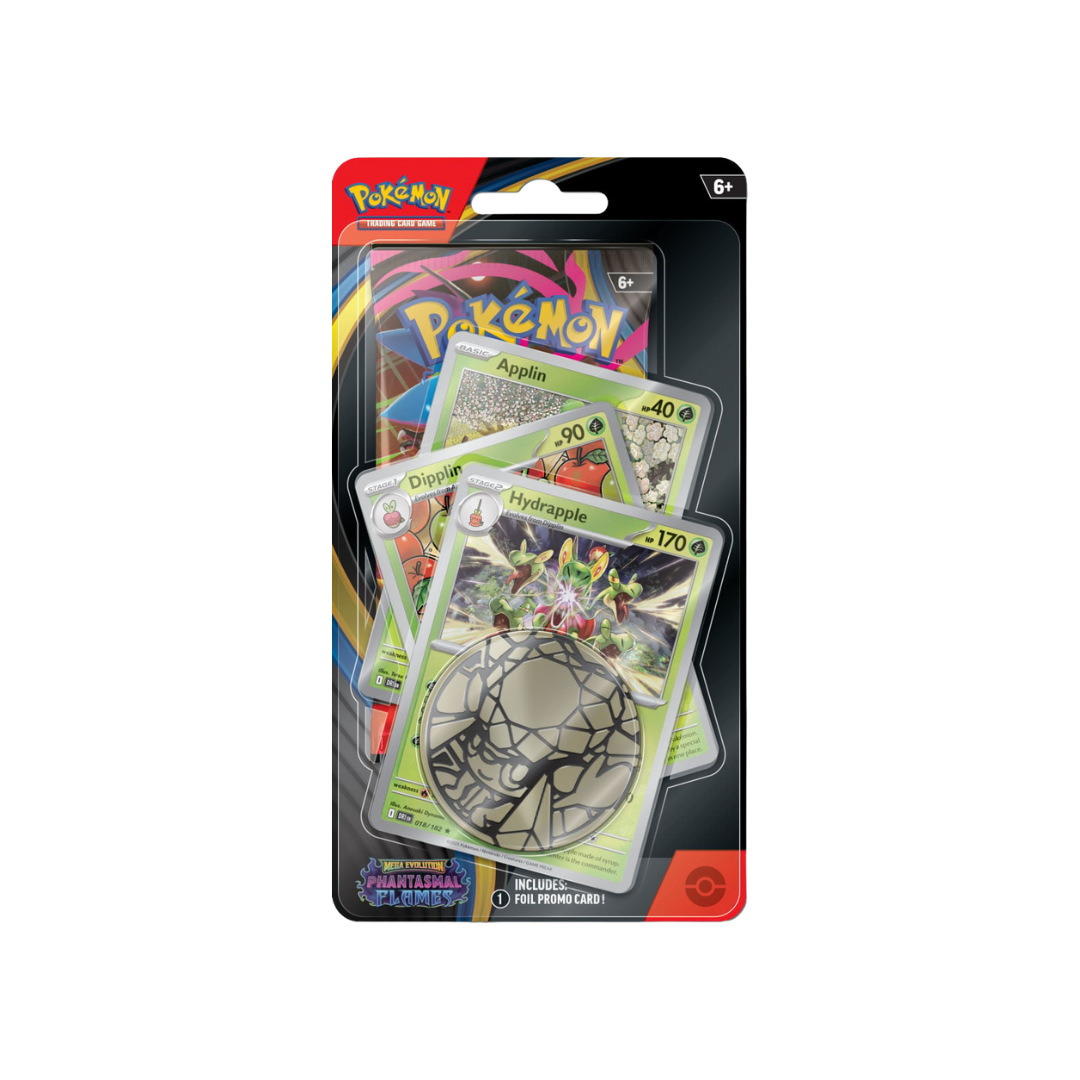 Explore the fiery shadows of Phantasmal Flames in a compact, collectible package. The Premium Checklane Blister brings you one booster from the brand-new Mega Evolution expansion, plus a foil promo and collector’s coin to round out the experience. Whether you're testing your luck with a single pack or hunting down every promo, this blister is a quick and exciting way to dive into the set.